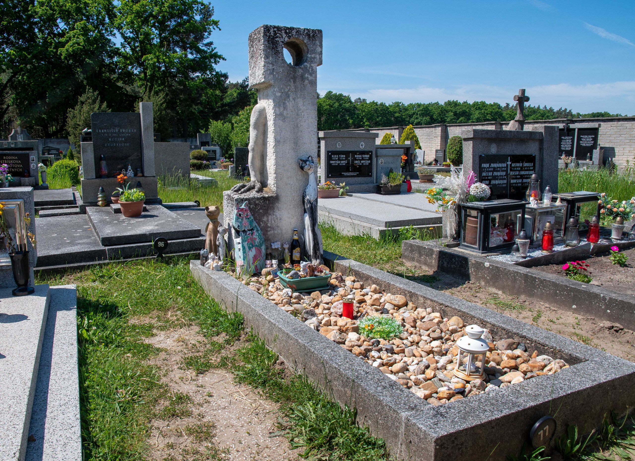 Kočky zdobí také spisovatelův náhrobek v nedalekém Hradištku a dělaly mu společnost v jeho oblíbeném Kersku, na malé chatě s evidenčním číslem 0274, stojící mezi vzrostlými stromy kerského lesa u Nymburka. Právě tam napsal většinu svých slavných děl. Objekt na konci minulého roku koupil Středočeský kraj a u příležitosti spisovatelova výročí ji 5. února od 10 do 16 hodin mimořádně zpřístupní veřejnosti. V budoucnu ji plánuje vybavit autentickým mobiliářem a naplnit tak záměr na zřízení muzea domu – house museum. Řada exponátů bude pocházet z Polabského muzea – Vlastivědného muzea Nymburk, kde se část expozice věnuje právě Hrabalovi.