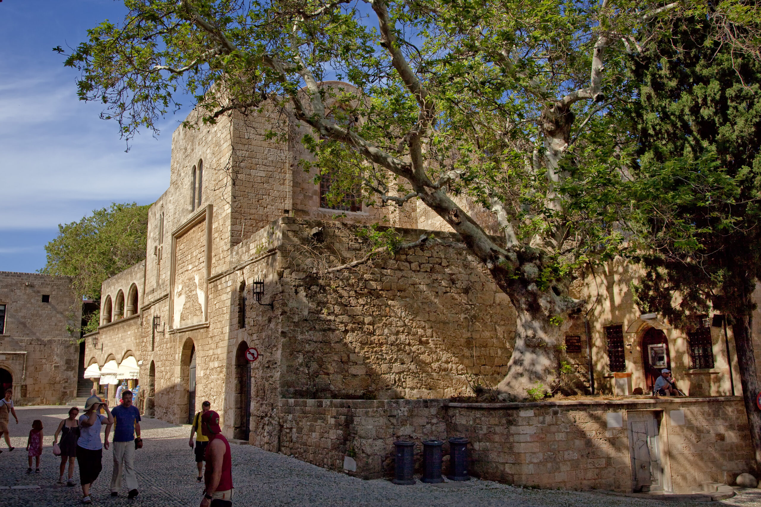 Palác velmistra řádu, slavný “Castello”, je jednou z největších památek postavených ve středověku. Byl správním centrem, sídlem vůdce rytířů svatého Jana z Rhodu a sídlem etablované vládnoucí třídy. Během osmanského období byl vážně poškozen výbuchem munice. Byl přestavěn v roce 1912 v době, kdy byl Rhodos pod italskou okupací. Dnes je zde Muzeum Rhodosu a má rozsáhlou řadu exponátů. Návštěvníci mohou obdivovat nejen samotný palác, ale také působivé sbírky náhrobků, obrazů, soch, šperků, knih a mozaik. Zde jsou také uloženy některé z nejdůležitějších archeologických nálezů starověké historie východního Středomoří, jako je Cena mithridatovských válek, socha Laocoon a mozaika záhadné Medúzy.
