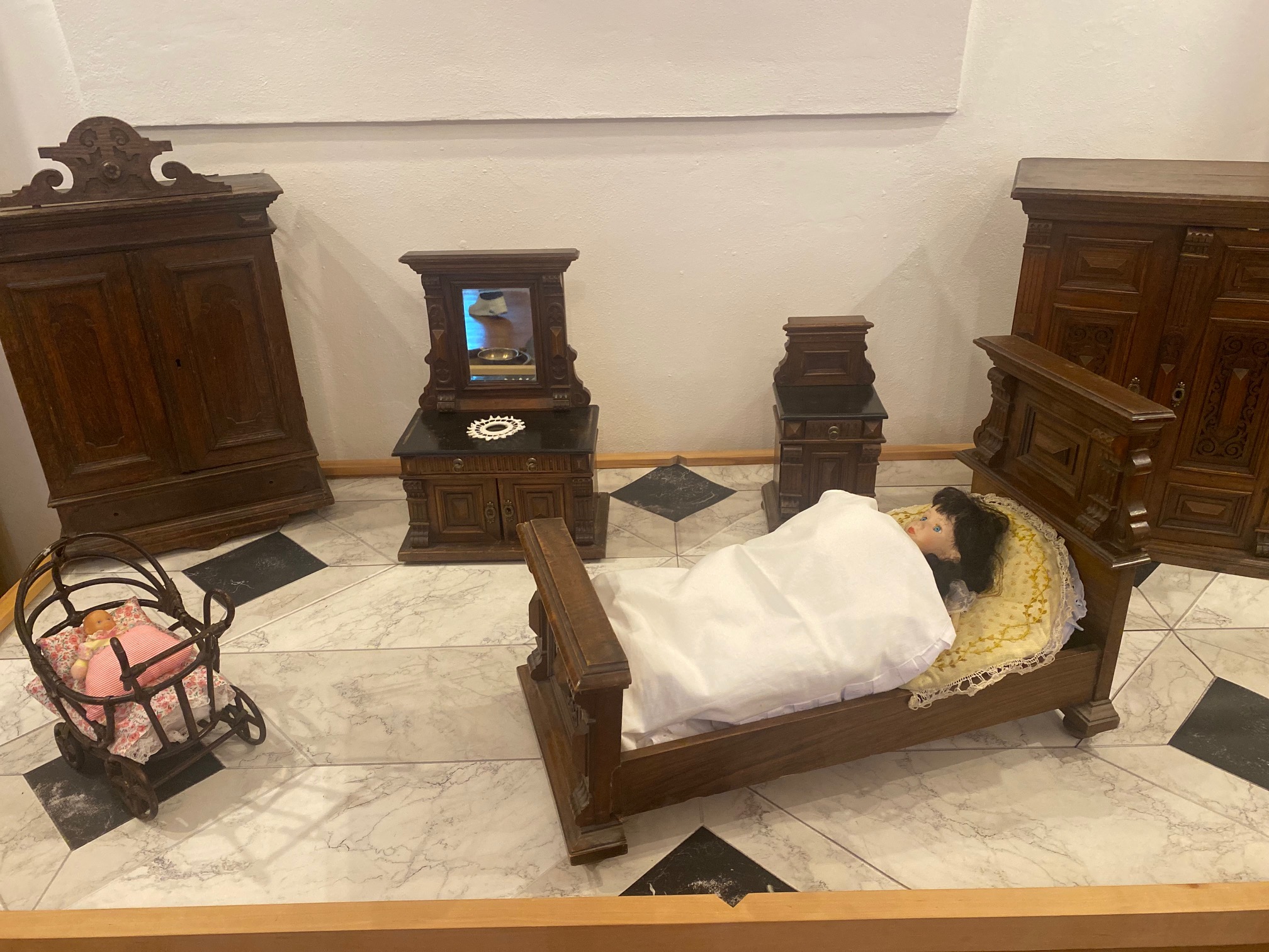„Krásné panenky věnovala zámku Dobříš sběratelka paní Dvořáková ze Sloupu u Davle. I ostatní vystavené předměty jsou ze soukromých sbírek. Panenky byly od nepaměti oblíbenou součástí každého zámku, hrávali si s nimi princezny a princové, děti… Nevíme, kdo konkrétně si hrával s těmito panenkami, ale nyní jsou u nás vystaveny proto, aby udělaly radost,” říká Kateřina Doušová ze zámku Dobříš. Několik desítek panenek různých velikostí doplňuje roztomilý nábytek pro panenky, který byl vyroben už v roce 1910, jídelní židlička/stoleček pro panenky, vějíře, kočárky či kočárek-rikša s panenkou, který je přes 70 let starý.