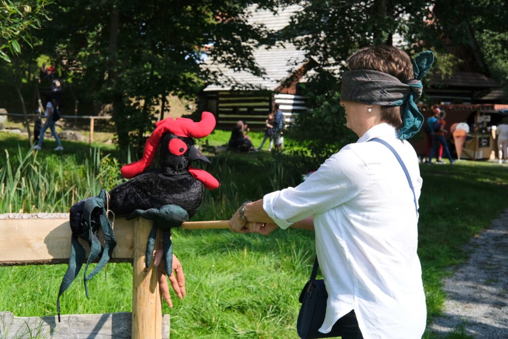 „Ve vybraných roubených objektech zavoní tradiční posvícenské pečivo, které si zájemci budou moci ochutnávat a případně koupit. Například v usedlosti z Mokré Lhoty se bude péci v chlebové peci, v usedlosti u Pilných buchty a ve mlýně zase perník tlačený do tradičních dřevěných forem. K posvícení vždy patřila veselá muzika, tanec a zpěv. U nás se o to postarají folklorní soubory Vysočan a Vysočánek z Hlinska. Obyčej Stínání kohouta předvede ochotnický soubor Čibako z Načešic. Návštěvníci se mohou sami přesvědčit a vyzkoušet si, že setnout hlavu dřevěnému kohoutovi není vůbec snadné – podaří se to většinou jen jednotlivcům,“ uvedla Magda Křivanová, ředitelka Muzea v přírodě Vysočina.