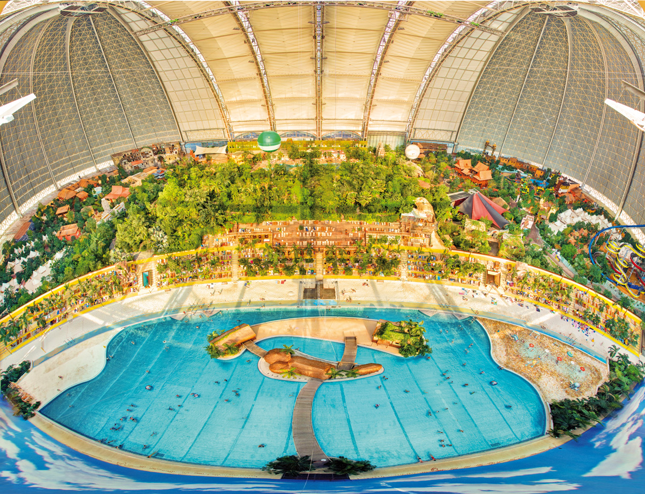 V laguně na druhé straně deštného pralesa je teplota vody 32 stupňů Celsia zárukou příjemného koupání. Skrz impozantní bránu „Bali-Tor“ se vstupuje do tropické vesnice. S originální architekturou z Thajska, Bornea, Bali a Samoi přenese návštěvníky do exotického světa a 8 restaurací a barů potěší širokou nabídkou kulinářských specialit.