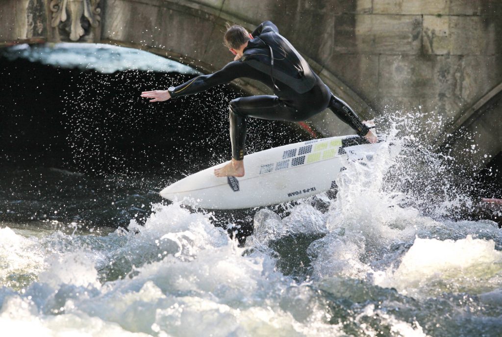 A když už jsme u vln: v Mnichově zjistíte, že k surfování není třeba moře. Surfovat lze přímo ve městě na zhruba metr vysoké vlně nedaleko Domu umění (Haus der Kunst). Dotyčný vodní tok je asi dva kilometry dlouhá umělá říčka, která vychází z řeky Isar a opět se do ní vrací. Další surfovací místo v Mnichově najdete u stanice metra Thalkirchen.