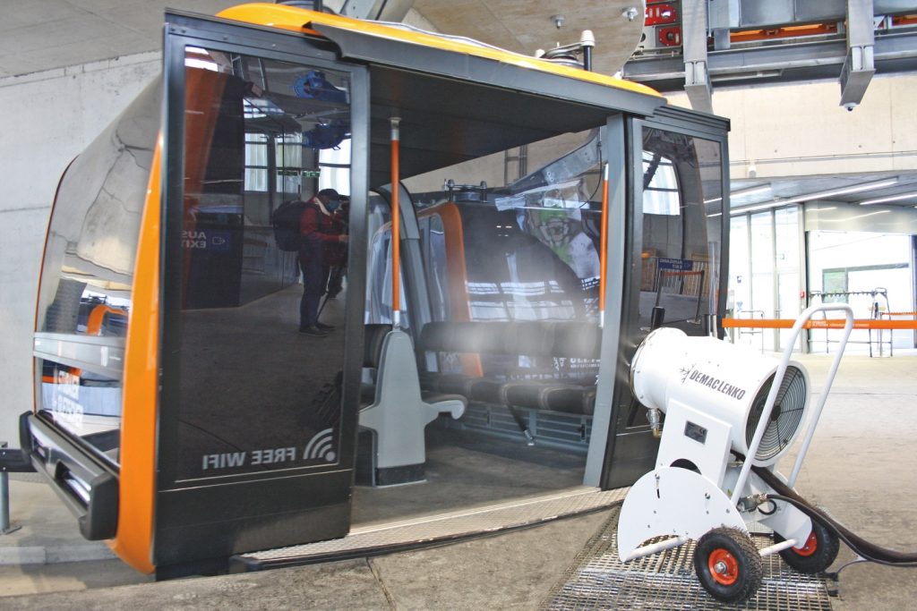 V lanovkách tady (stejně jako na Kronplatzu nebo Seiser Almu) bude už od zahájení provozu fungovat automatizovaný systém dezinfekce gondol, vyvinutý firmou Demaclenko, lídrem v umělém zasněžování. Testovali ho úspěšně už v létě v areálu Plose u Brixenu. Kabinka prostě jede a vyčistí se, aniž by musela zastavovat.