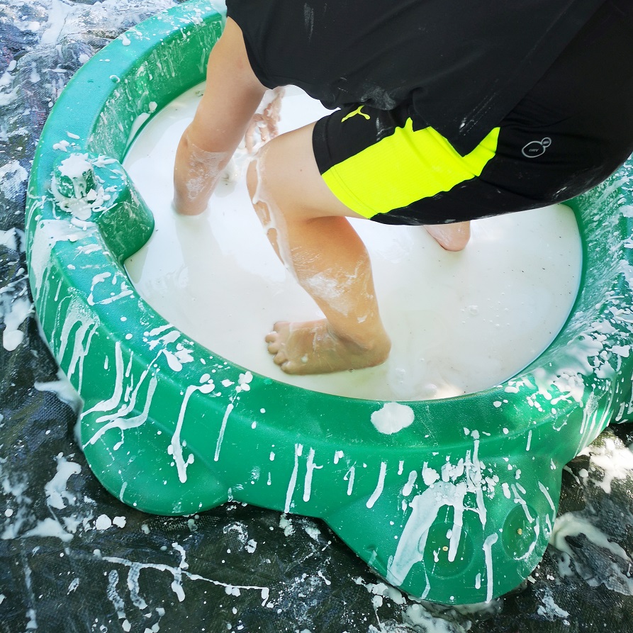 Ale “Ninja slack” je také něco: Mladí badatelé zde experimentují s velmi zvláštní kapalinou, která se za určitých podmínek chová jako pevná látka. Pomocí nejjednodušších ingrediencí vyrobí kapalinu, která se po působení tlaku náhle stane pevnou. Pokud se tento pokus provádí venku, mohou se malí ninjové pokusit po této kapalině přeběhnout – musejí být ale hbití, protože pokud nepoběží dostatečně rychle, uvíznou!