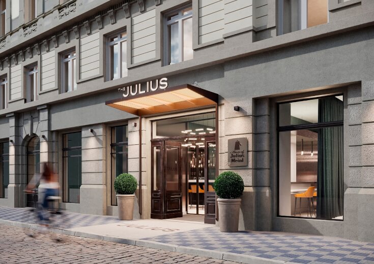 Prvotřídní rezidence The Julius, v srdci Prahy na Senovážném náměstí 3, je prvním developerským projektem společnosti House of Julius Meinl v segmentu ubytovacích služeb v Praze.