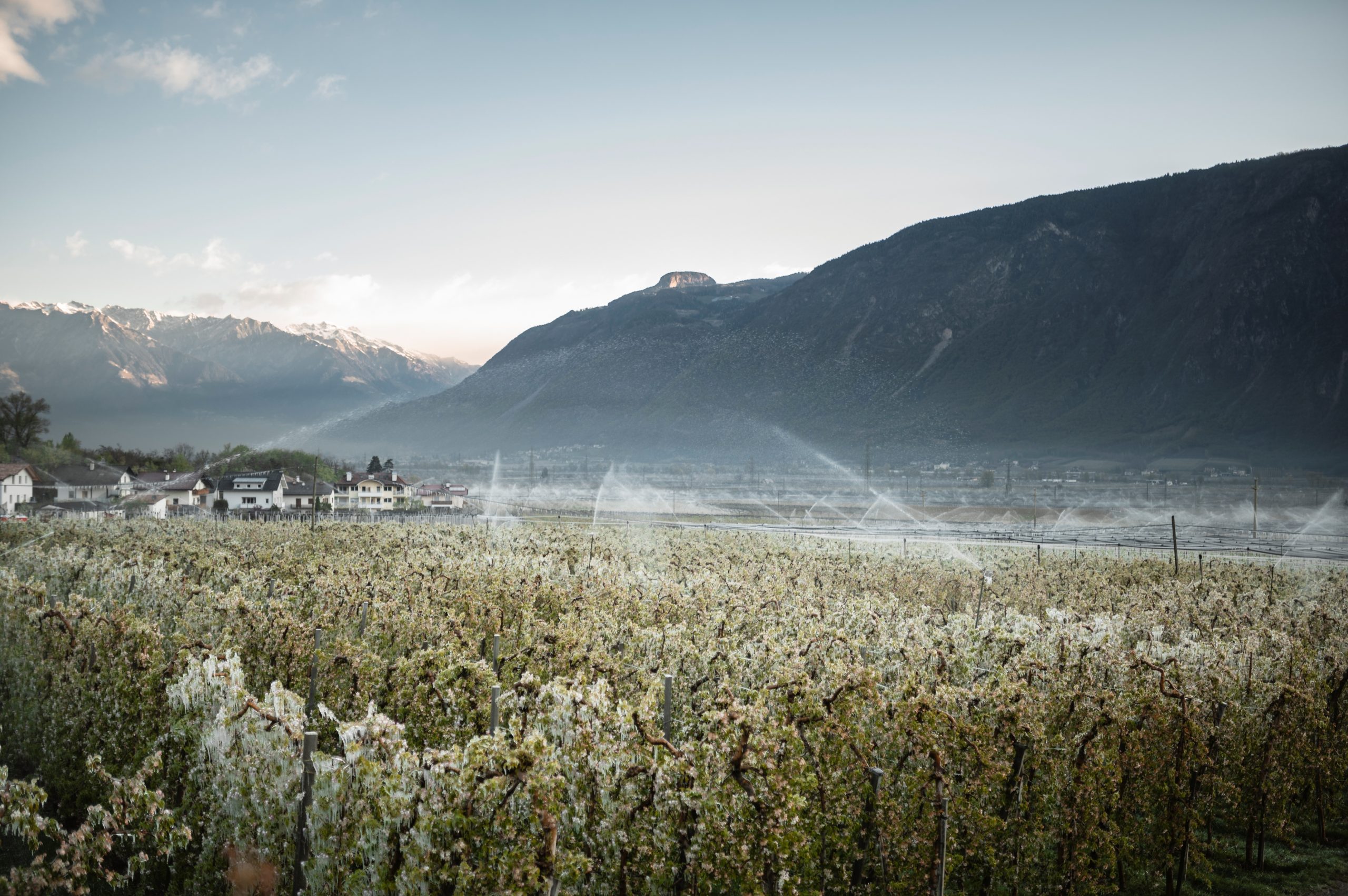 Ostatně, pokud jde o kropení mrazem, odvedli průkopnickou práci právě tady. V roce 1949 postavil farmář z Terlanu ze starých trubek a válečného materiálu první systém kropení mrazem, uvedl ho do provozu o rok později a poté sloužil jako model.
