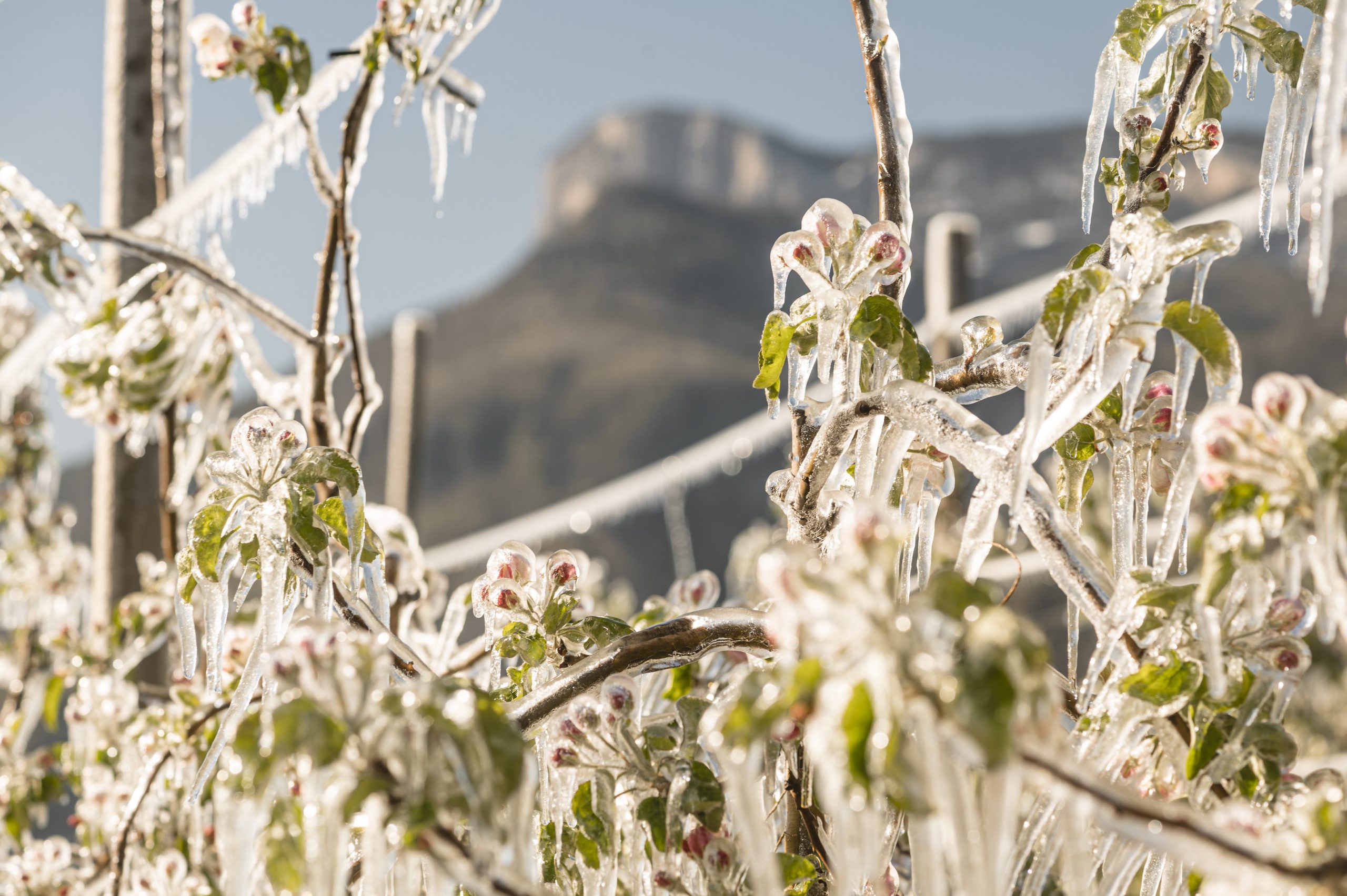 Hustá síť 119 meteostanic poskytuje zemědělcům neustále aktualizovaná čísla a naměřená data o místní teplotě, vlhkosti a směru větru. Když se teploty blíží nebezpečným limitům (např. -5 °C v první fázi vegetace a 0 °C během květu), spustí se mrazové poplachy – někdy o půlnoci, někdy ve 4 hodiny ráno. Nízko položené sady, například podél řeky Etsch, jsou náchylnější mrazivé hrozbě než ty na svazích. Pouhých několik metrů nadmořské výšky může způsobit rozhodující teplotní rozdíl mezi mrazem a „nezámrazem“.