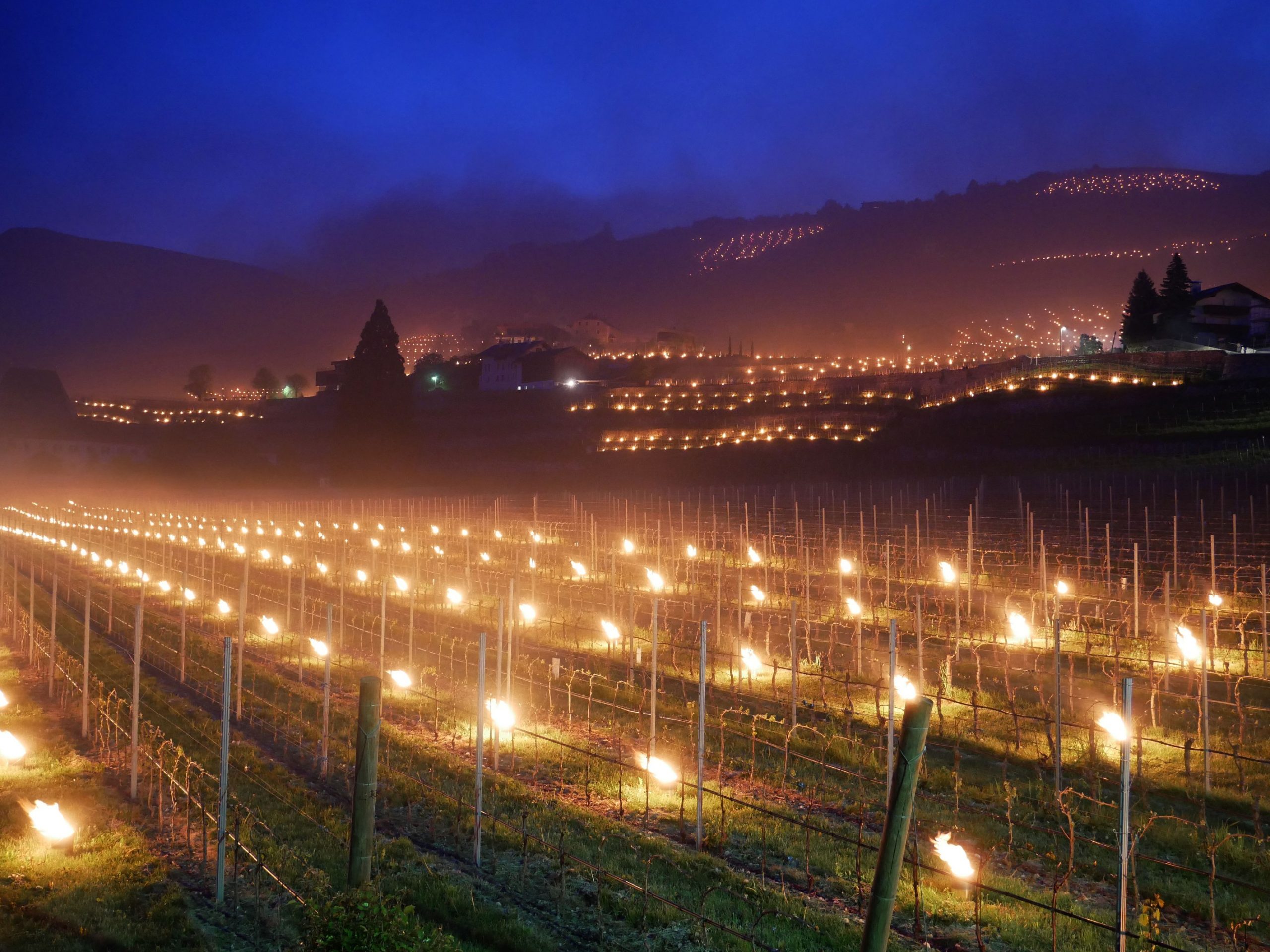 Tam, kde mrazové zavlažování není možné, protože vodu nelze čerpat, například na mírných svazích, se zemědělci snaží zachránit mrazivou noc „svíčkami“. Tento způsob byl znám již ve starém Římě a zpočátku převládal v Jižním Tyrolsku, zejména ve vinařských oblastech. Dnes se osvědčuje i v ovocnářství. Malé kontrolované ohně, které se zapalují v pravidelných intervalech mezi řadami stromů, ohřívají vzduch na malé ploše o většinou důležité dva až tři stupně Celsia, navíc kouř způsobuje i turbulence vzduchu. Vzhledem k tomu, že ne všichni farmáři mají kropicí systém na ochranu pupenů zmrzlou vodou, někteří se musejí uchýlit k prastaré tradici.