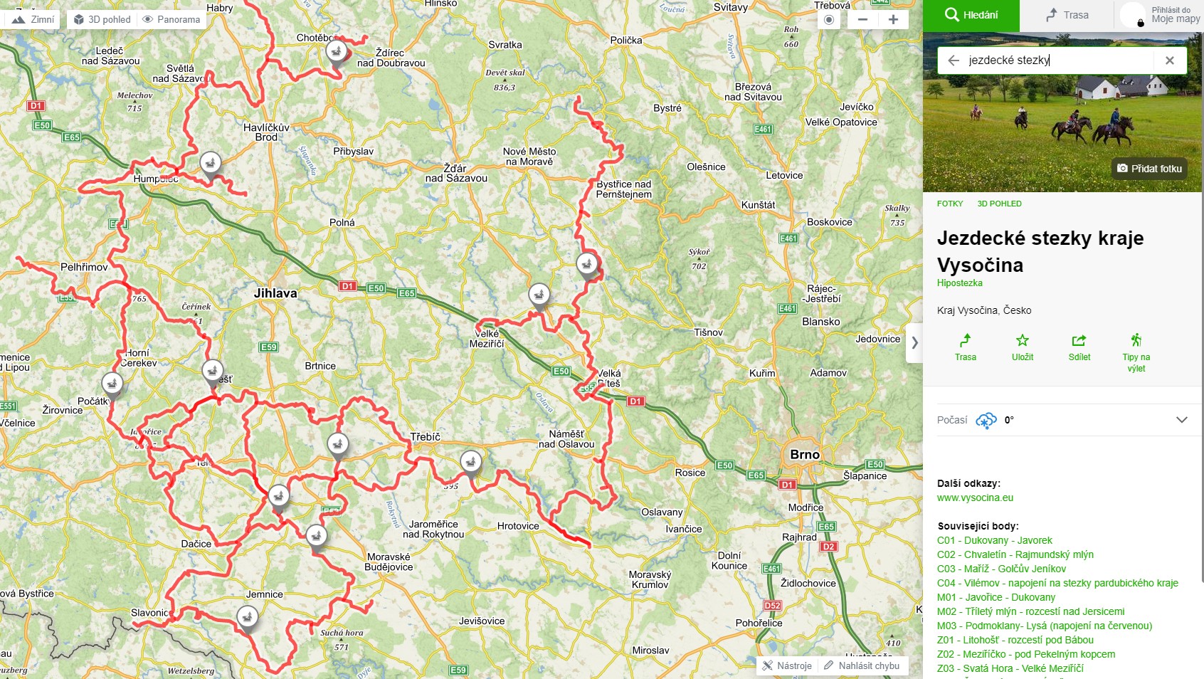 Jezdecké stezky na Vysočině nyní najdete na Mapy.cz. Vysočina je tak prvním krajem, který má hipostezky zapracované do nejpoužívanějšího mapového portálu v Česku.