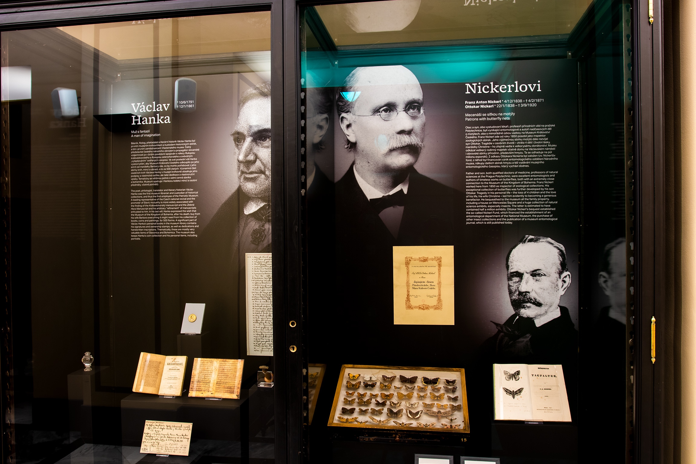 Na muzeum je v této výstavě nahlíženo hned ze čtyř pohledů. V suterénu se návštěvníci seznámí se základy instituce spojenými s osobnostmi, v 1. patře s jeho budovami, ve 2. patře se sbírkami a u kopule s aktuálními projekty. Představeny jsou zde i méně známá témata, osobnosti a sbírky. Prostor je tedy věnován nejen zakladatelským osobnostem, ale i donátorům, muzejníkům, a i samotným návštěvníkům. Dozvíte se například, z jakých společenských poměrů návštěvníci pocházeli nebo jak se proměňovaly jejich názory na expozice. Jako architekt budovy i samotných vitrín nemůže chybět Josef Schulz (1840–1917). Jeho osobnost je pro instituci klíčová. Tento všestranný architekt totiž navrhl Historickou budovu i s veškerým vybavením. Vedle vitrín, ve kterých je expozice umístěna, mohou návštěvníci dodnes odpočívat na jím navržených lavičkách.