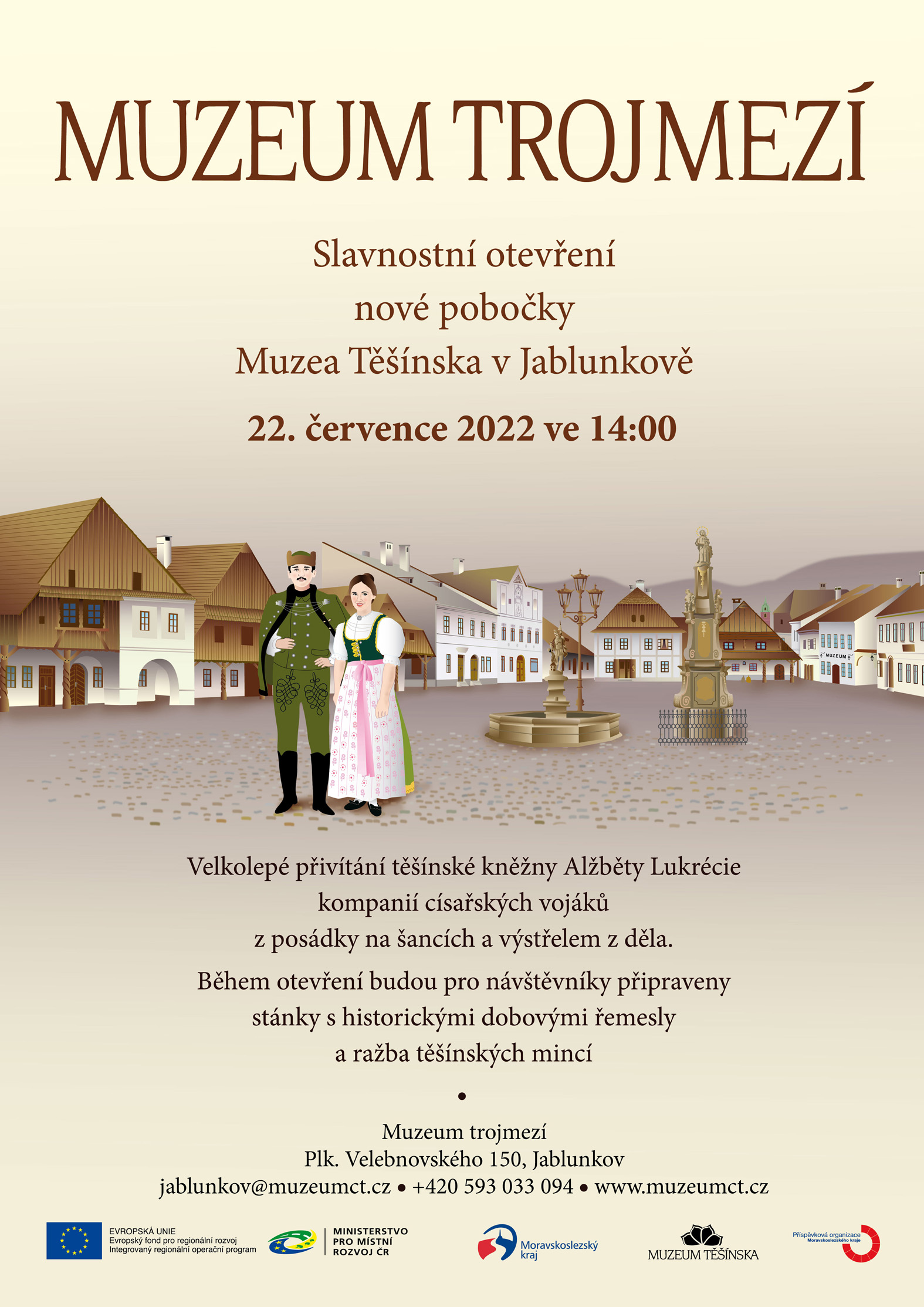 Slavnostní otevření Muzea Trojmezí se koná v pátek 22. července ve 14 hodin. Návštěvníci se mohou těšit na bohatý program s vystoupením vojáků v dobových uniformách císařského vojska, přivítáním kněžnou Alžbětou Lukrécií, střelbou z děla či mušket, ukázkou dobových řemesel nebo ražbou těšínských mincí.