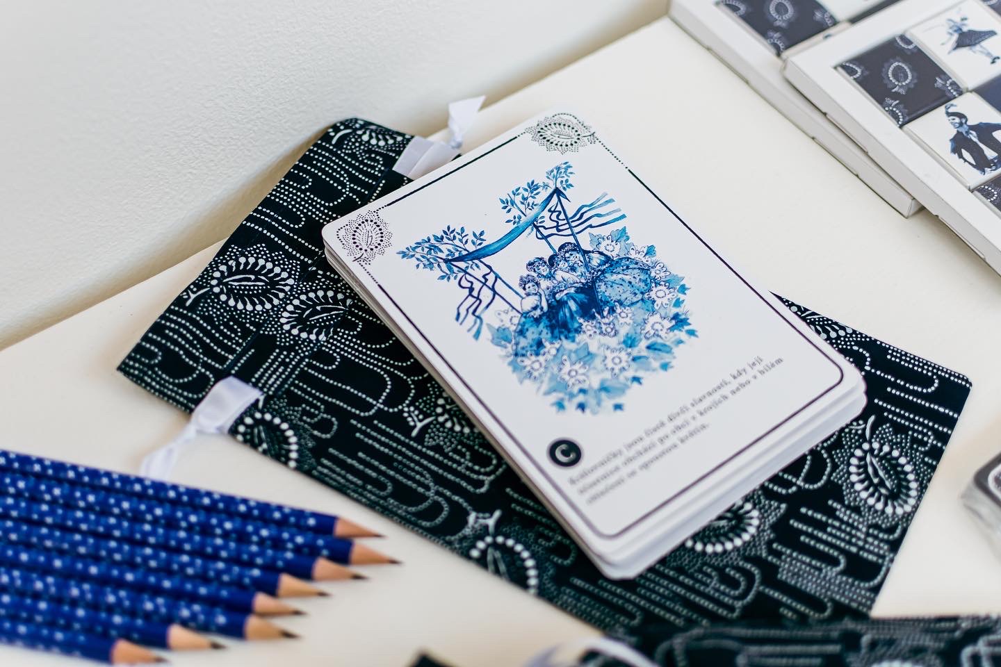 S modrotiskem se můžete seznámit i hrou. Zahrajte si s rodinou nebo přáteli karty s modrobílými ilustracemi Zuzany Osako a zjistěte, jak jste na tom se znalostmi lidových tradic. Při opakované hře si vše zapamatujete dřív, než bude vydaná druhá, o stupínek náročnější série. První sérii karetní vědomostní hry o české lidové kultuře představila Zuzana Osako spolu s Centrálou cestovního ruchu Jihomoravského kraje a kolegyní Věrou Colledani v minulém roce.