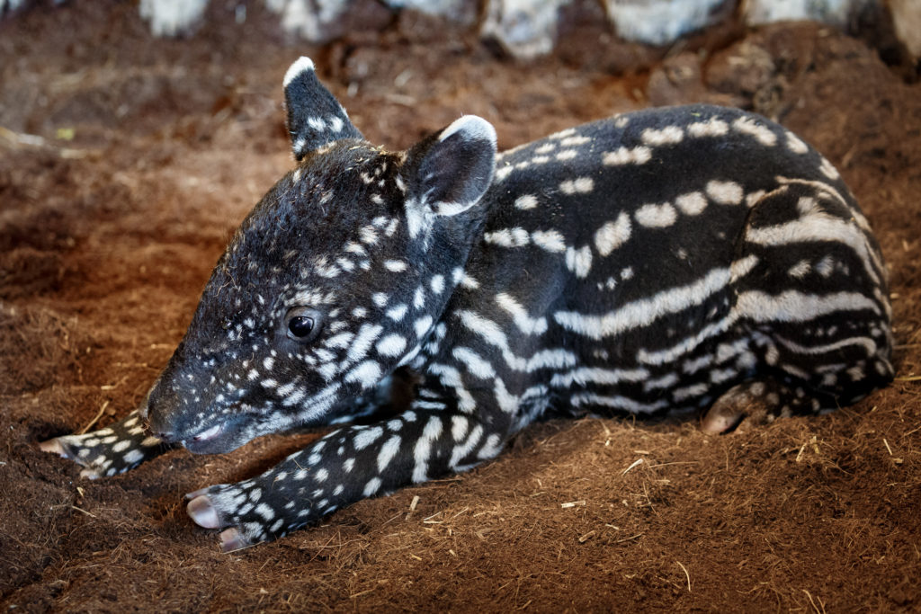 Mládě vzácného lichokopytníka přivedla na svět samice Indah v neděli 19. dubna odpoledne po více než čtrnácti měsících březosti. Malý tapír čabrakový je samec a zatím si vede dobře. Typické kávově hnědé zbarvení s podélným bílým pruhováním a skvrněním začne ztrácet zhruba za dva měsíce a postupně se přebarví do černobílé podoby dospělých. Otcem mláděte je samec Niko a pro tento pár jde již o druhého potomka. Prvním byl v roce 2015 slavný Budak Puntja, přezdívaný Punťa, který dnes pod jménem Moke žije ve vyhlášené Zoo Tchaj-pej na Tchaj-wanu a letos se sám stane otcem.