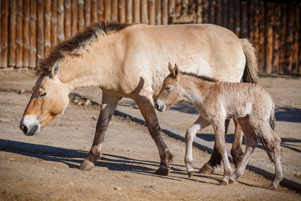 Dalším dlouho očekávaným mládětem je hřebeček koně Převalského, kterého porodila klisna Hara jako své již sedmé hříbě. Dva z jejích předchozích potomků – klisny Querida a Tarik – byly v letech 2015 a 2019 transportovány do Mongolska v rámci velkého reintrodukčního projektu Zoo Praha „Návrat divokých koní“. Otcem novorozeného mláděte je hřebec Len, jenž je jako pravnuk posledního divokého koně odchyceného ve volné přírodě geneticky nesmírně cenný a v Zoo Praha zplodil již 14 hříbat. Tento jeho nejmladší potomek je druhým letošním hříbětem koně Převalského. Jako první přišla na svět 10. dubna samička v chovné a aklimatizační stanici v Dolním Dobřejově. Pro jejího otce, nově příchozího hřebce Cama, jde o první hříbě. Matka Warsa odchovala již šest potomků, z nichž dvě klisny – Sarangua a Tara – dnes žijí v mongolském Tachin talu.